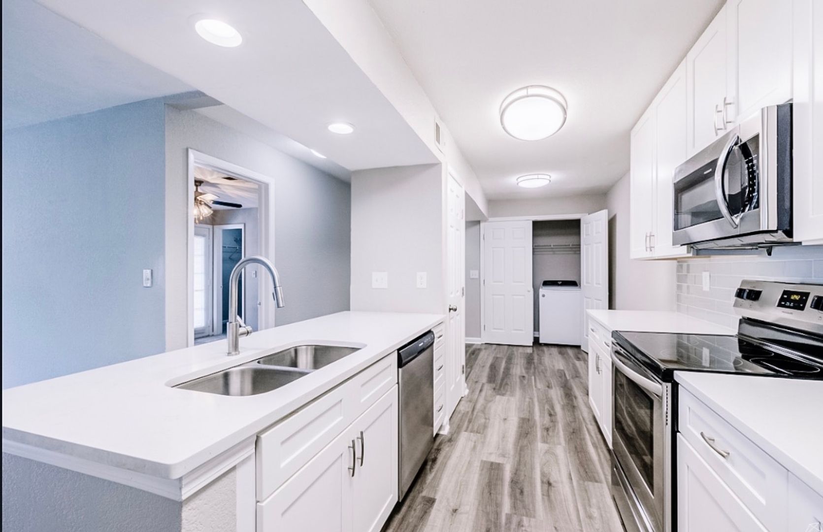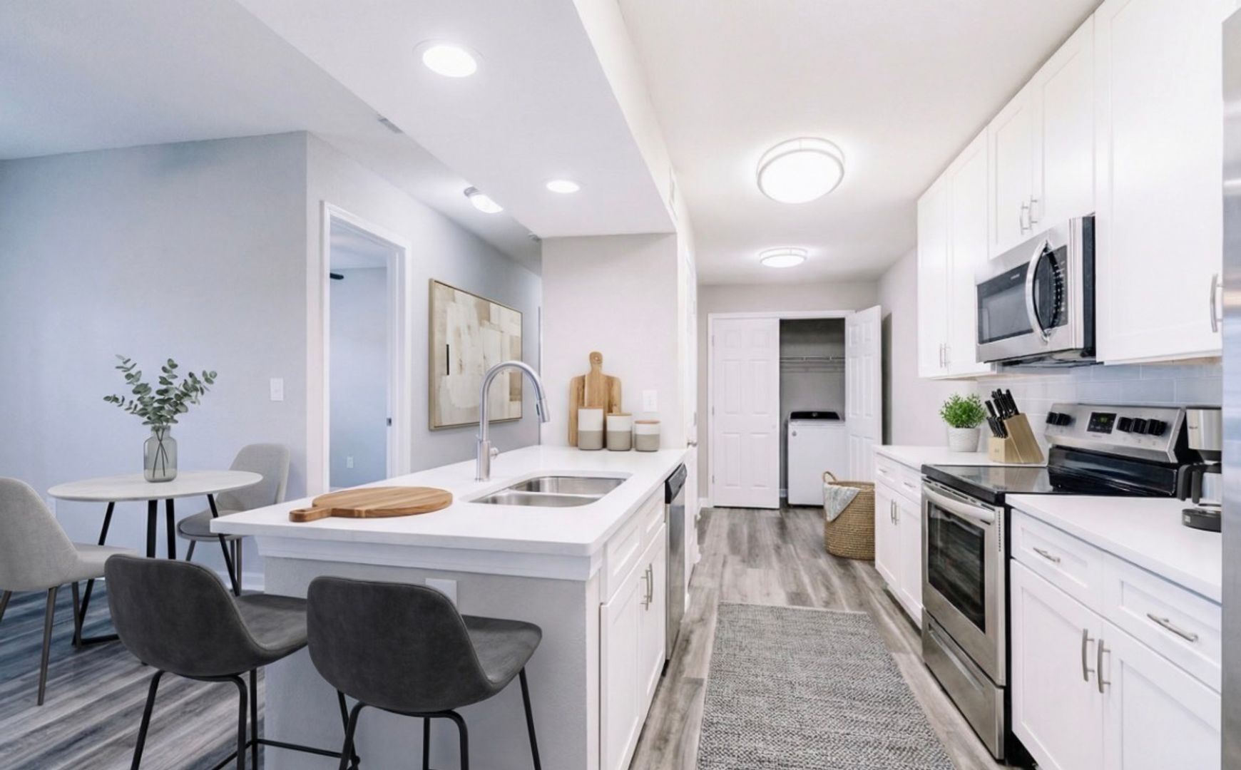 Inside, enjoy modern finishes including in-home washer and dryer, stainless steel appliances, granite countertops, and a stylish blend of luxury vinyl plank and carpet flooring designed for both comfort and durability.