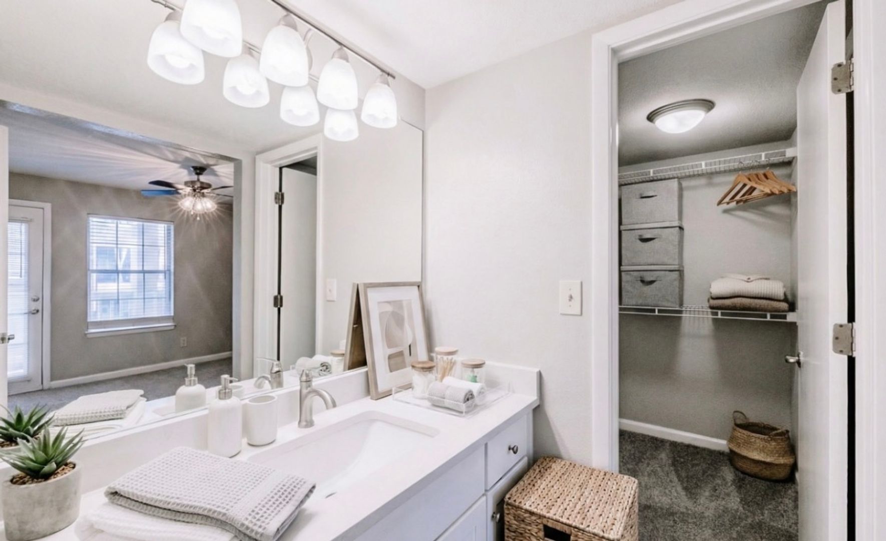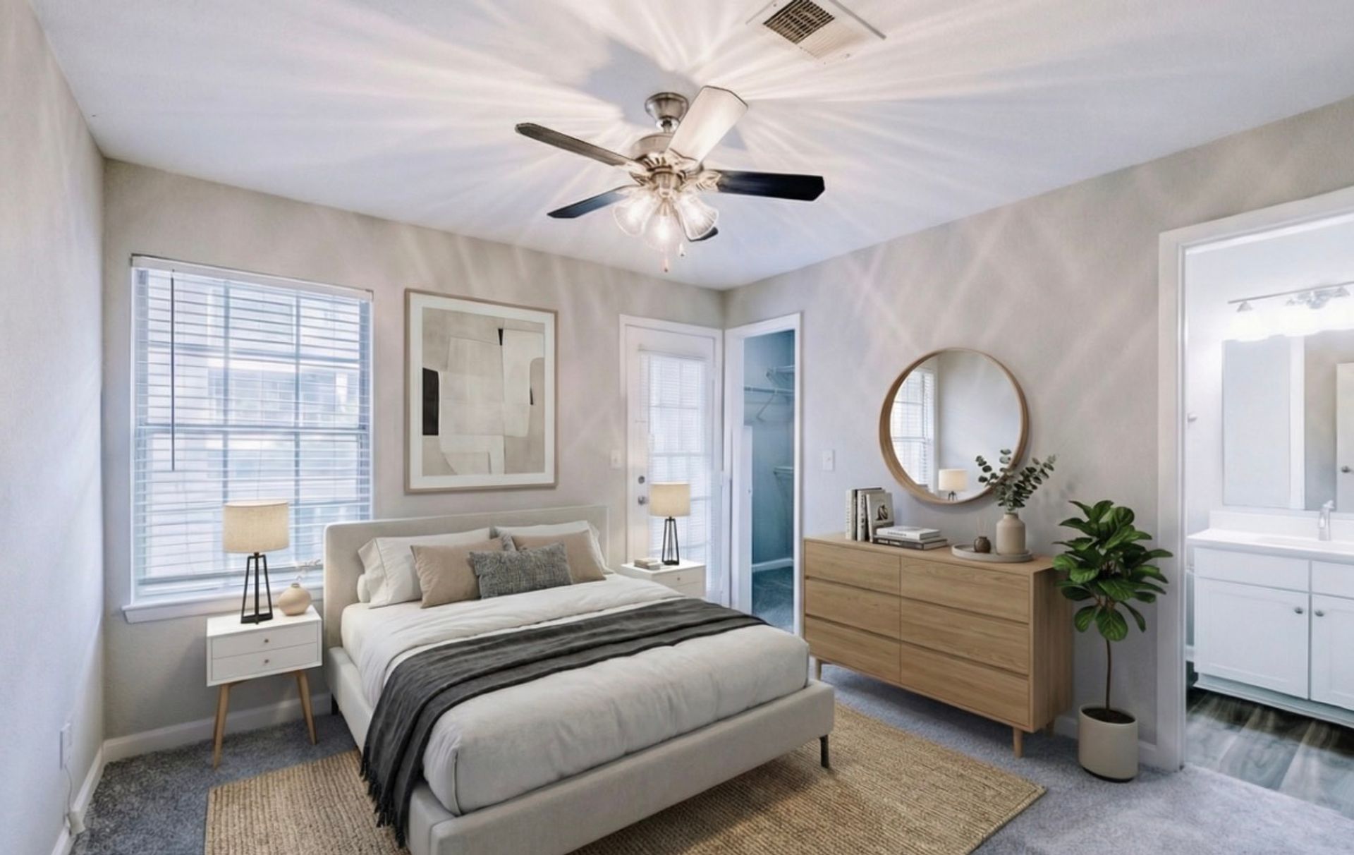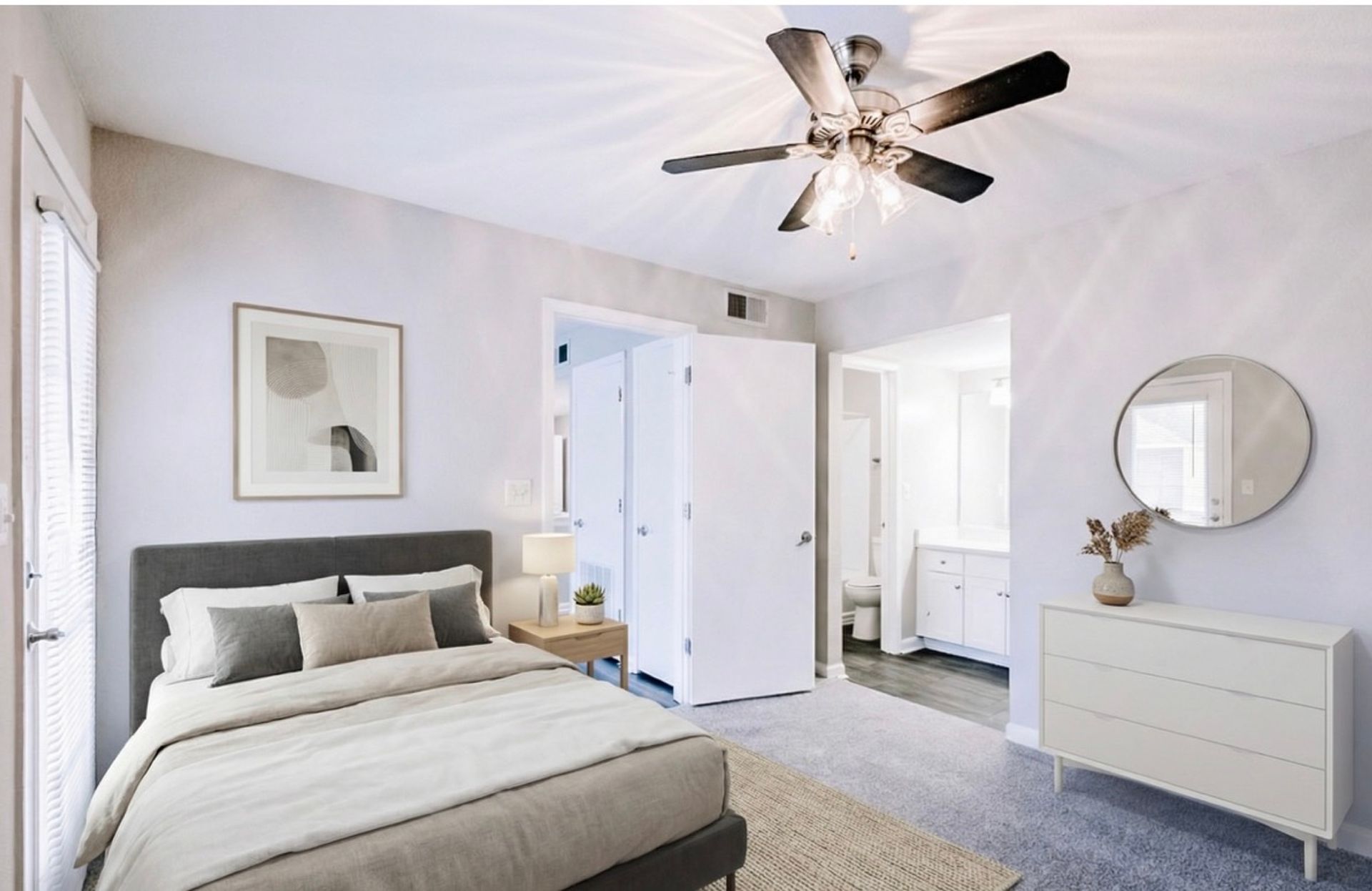 This two-bedroom, two-bathroom Elite floor plan is the community’s most spacious layout—perfect for roommates, remote professionals, or anyone who values additional living space. Each bedroom features its own private balcony, creating a relaxing outdoor retreat right outside your door.