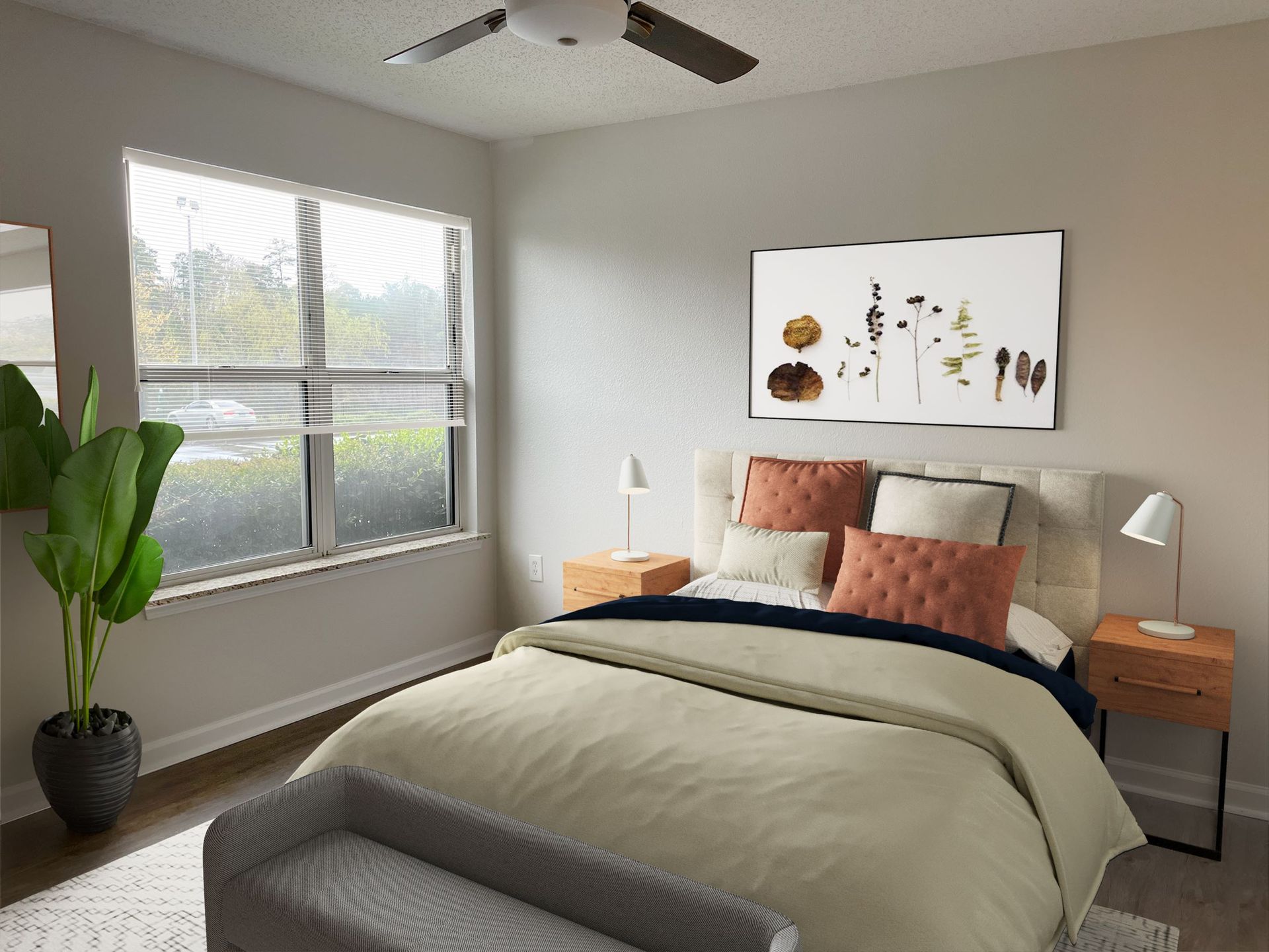 Stylish 1-bedroom layouts with open designs, quartz countertops, wood-style flooring, and smart-home features—ideal for modern living with maximum efficiency and comfort.