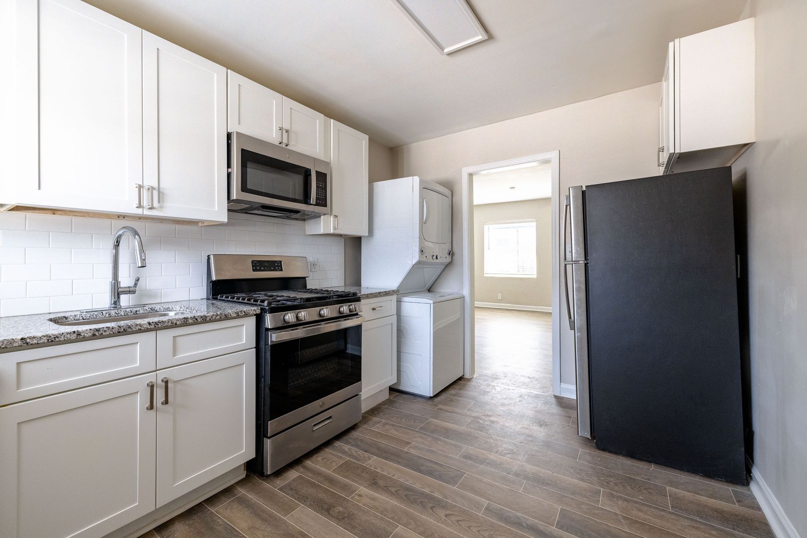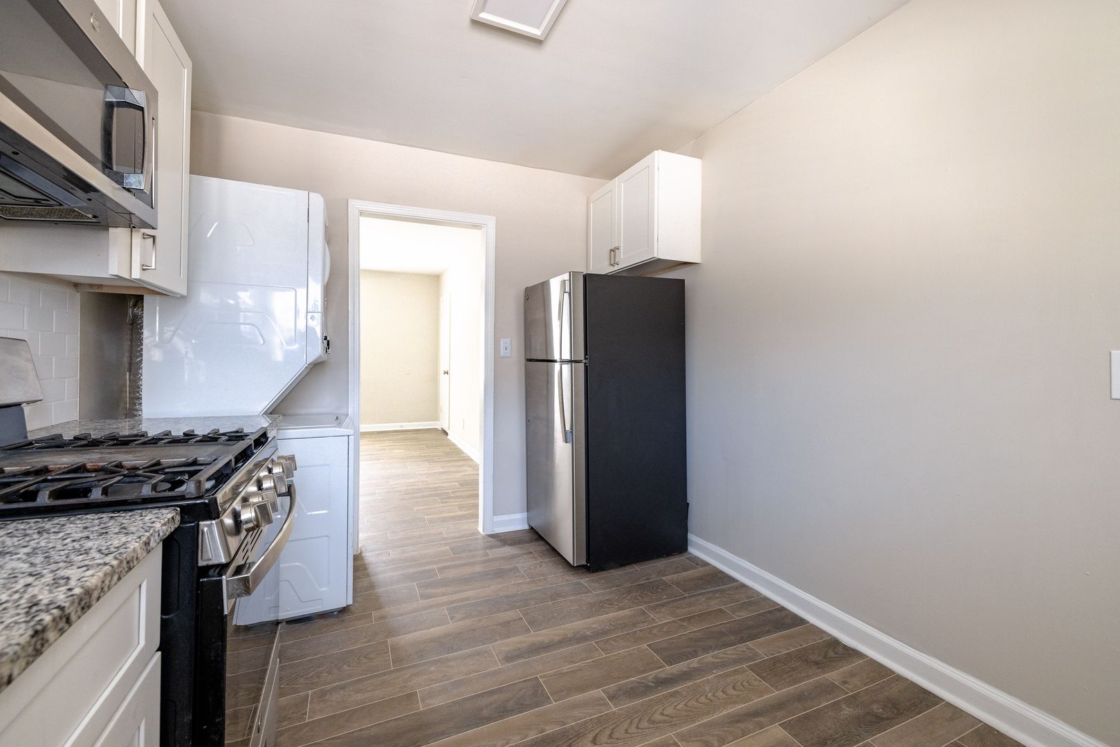Our thoughtfully designed, gas and electric 2-bedroom, 1-bathroom floor plans are ideal for students, professionals, and small families. Each unit features modern finishes and practical comforts—including stainless steel appliances, and your options of hardwood, LVP, or carpet flooring.